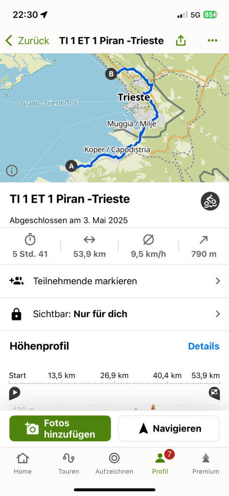 Etappe beendet mit Zeit für Triest