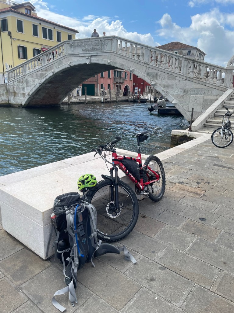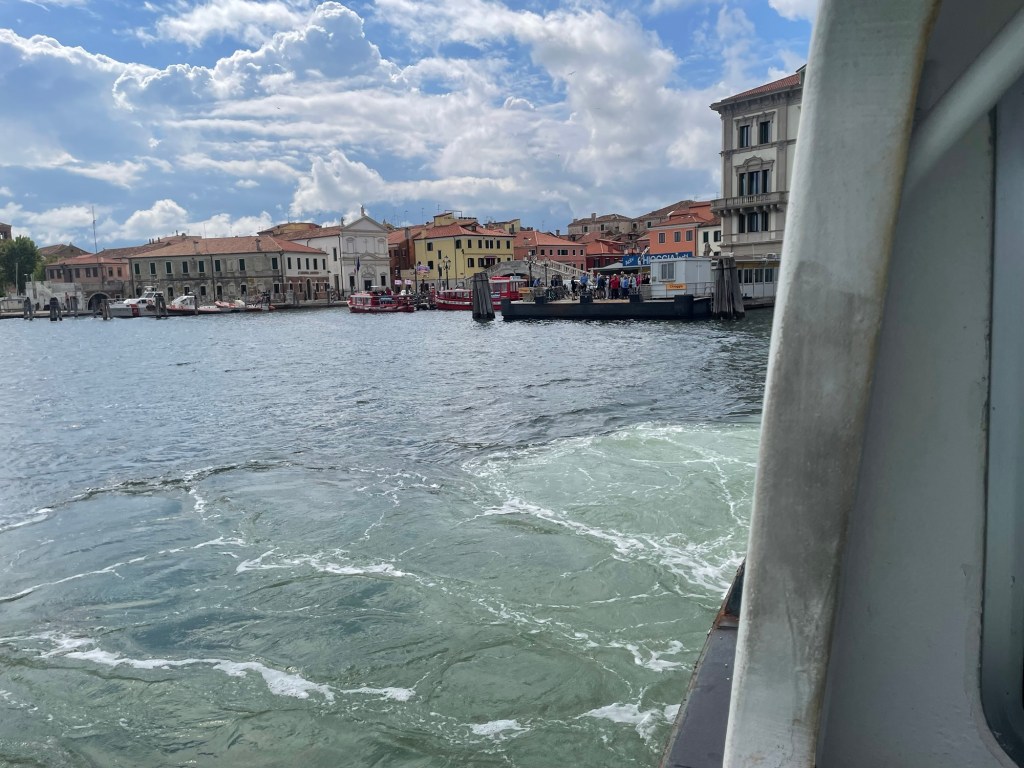 Ganz früh los, Frühstück nur einpacken, ein Espresso im stehen . Die Fähre geht 8.50 uhr an der Südspitze des Lido bis dahin 11km