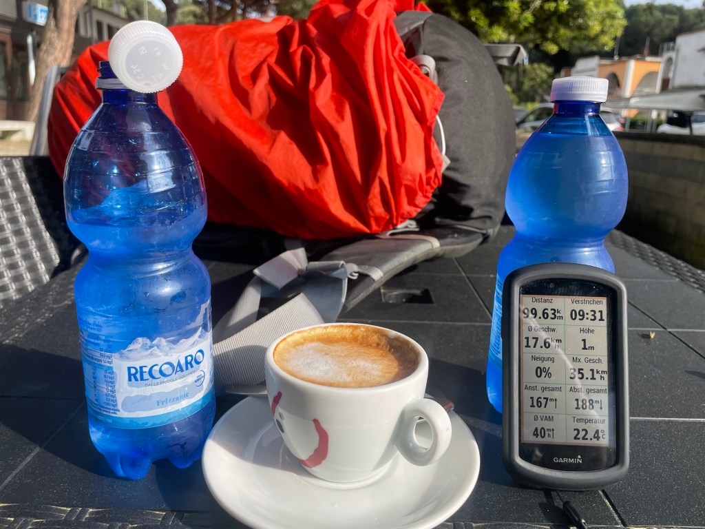 Beim 100sten Kilometer von heute gibt es den ersten Kaffee