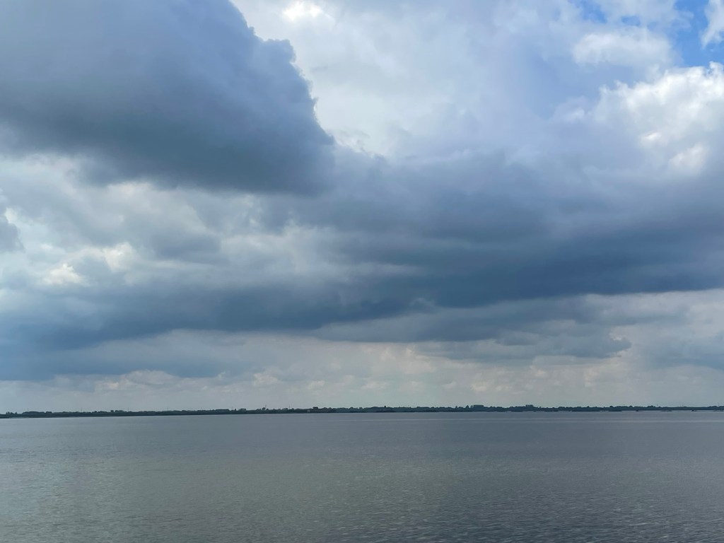 Ich überlege mir. Unterstellen kann ich mich hier nirgends. Also rein treten in Die Pedalen was geht und das Navi im Blick. In welche Richtung ist er kürzer. Doch ich habe Glück der Damm macht nach 5km einen Knick und biegt nach links ab vom Gewitter weg.