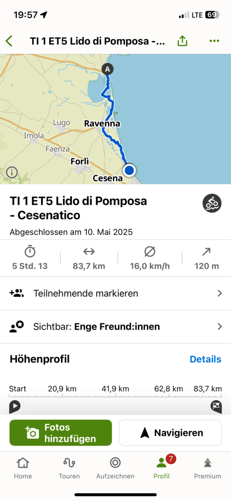 Dann lande ich in Milano Marittima nach 71 km.