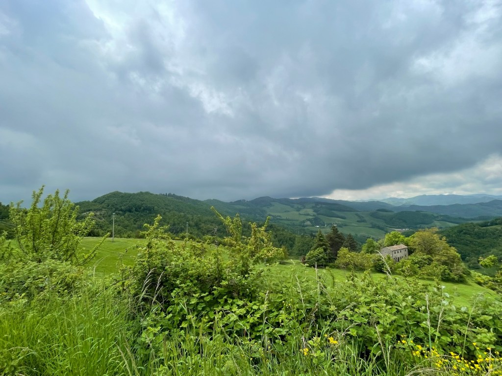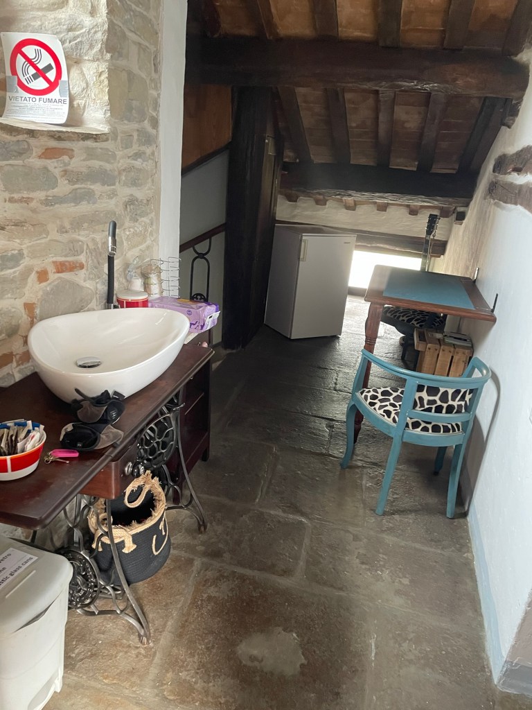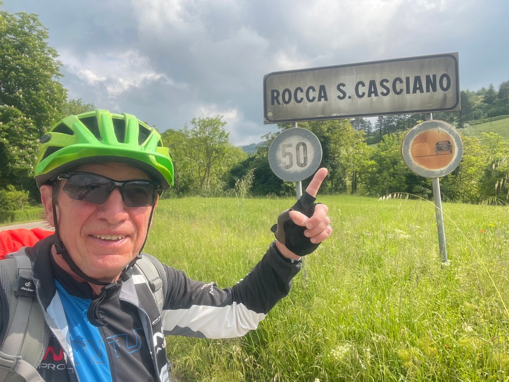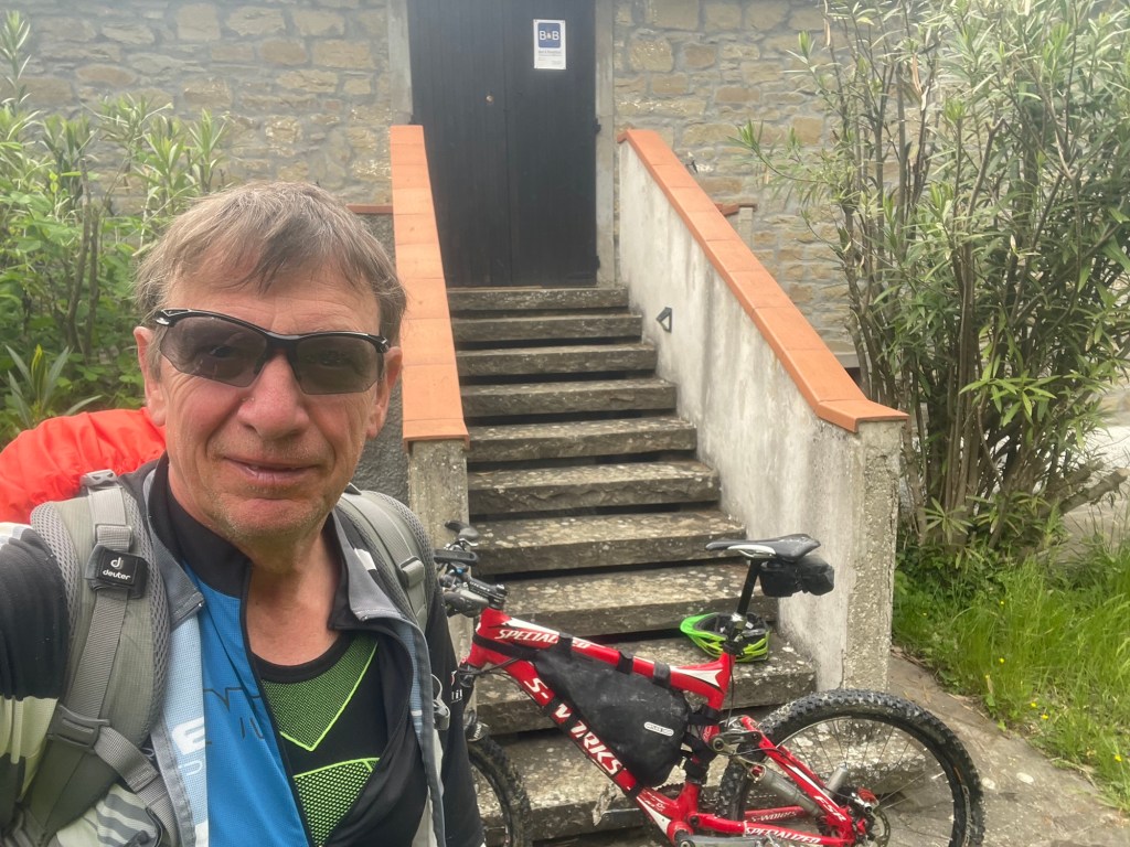 Das finden eines Zimmers ist gar nicht so einfach da schon 2 Hotels wohl schon länger zu sind. Das Dritte was ich anfahre da sind alle Zimmer belegt. Aber der nette Gastwirt telefoniert so lange bis er was hat für mich. Er sagt immer ein deutscher mit dem Fahrrad, was er sonst noch sagt verstehe ich nicht. Dann holt er seine Frau aus der Küche und erklärt mir sie fährt jetzt mit ihrem blauen Fiat 500 mir voraus zum Quartier was er für mich gefunden. Ich sage er kann die Adresse einfach in mein Handy eintippen und dann finde ich es. Nein das geht nicht. Also mache ich mit seiner Frau die Auto-Radl Prozession durch Marradi. Das aus ist auf der anderen Seite vom Ort.