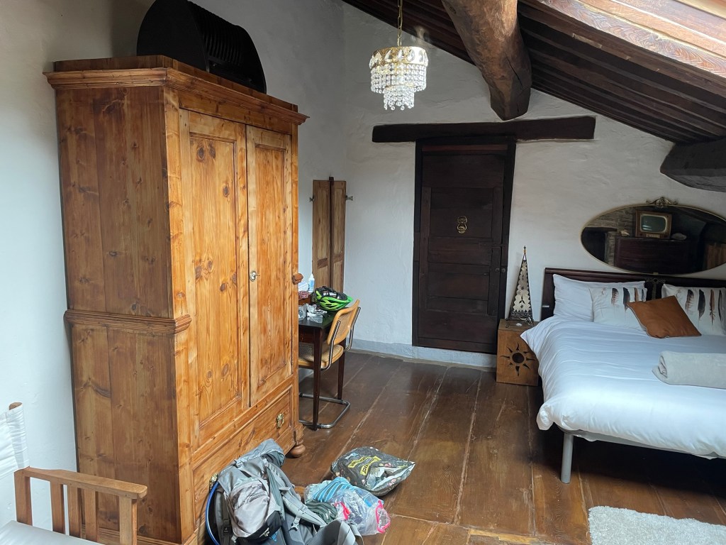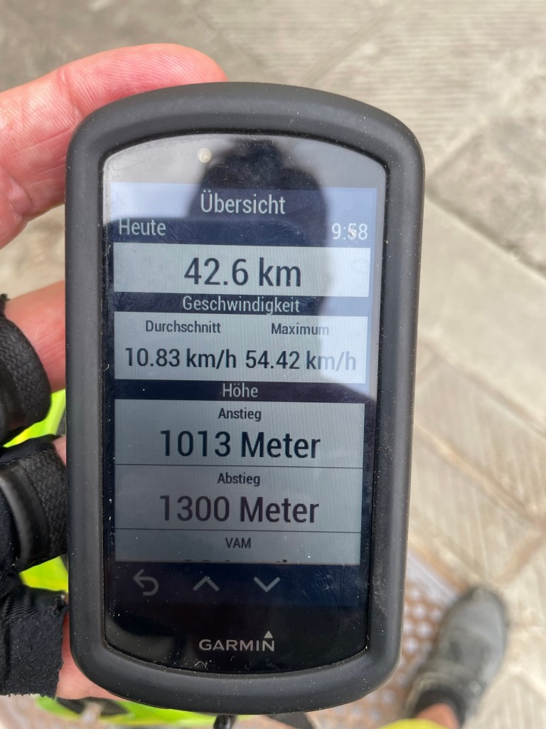 Julian holt noch mein Radl aus der Garage und hat einen Eimer mit Wasser und Lappen daneben gestellt. Er hat sich wohl erinnert, ein mein Satz gestern abend nach dem putzen. Wo die Bremsen noch nicht ganz frei von Kleinen Steinchen waren. „Da muss ich morgen nochmal nachbessern“. Ich fasse es nicht. Das sind nicht die Vermieter, sondern die haben nur in der anderen Wohnung im Haus gewohnt.